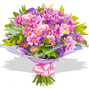 Любовь в моем сердце - букет из хризантем, эустом и роз