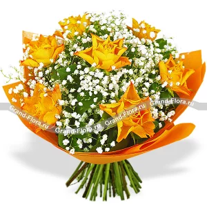 Цветные кружева - букет из оранжевых роз и альстромерий