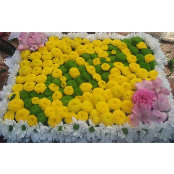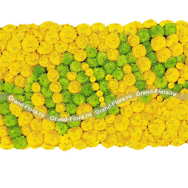 Стандартный: хризантема кустовая желтая (сантини) - 17 шт., хризантема кустовая зеленая - 9 шт., оазис.