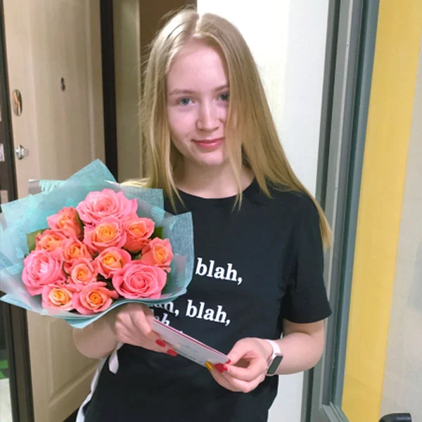 Спасибо всем большое.Дочь очень довольна, букет понравился. Мы тоже довольны, что за 10 000 км смогли с Вашей помощью поздравить доченьку с восемнадцатилетием! Особая благодарность, что смогли доставить цветы утром, как я просила. Успехов!